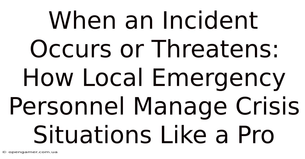 Whenan Incident Occurs or Threatens Local Emergency Personnel Manage